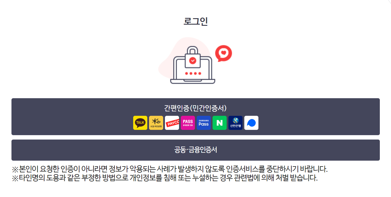 2. 공인인증서 없이도 간편인증으로 로그인이 가능합니다.