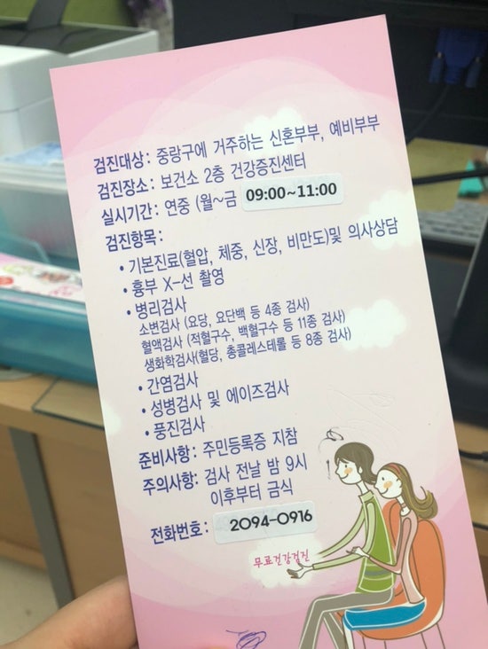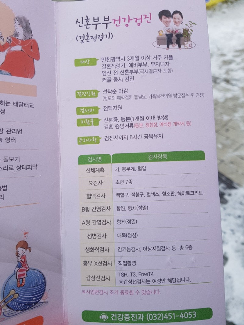 기장보건소 산전산전검진(신혼부부건강검진)심사+검진비 무료