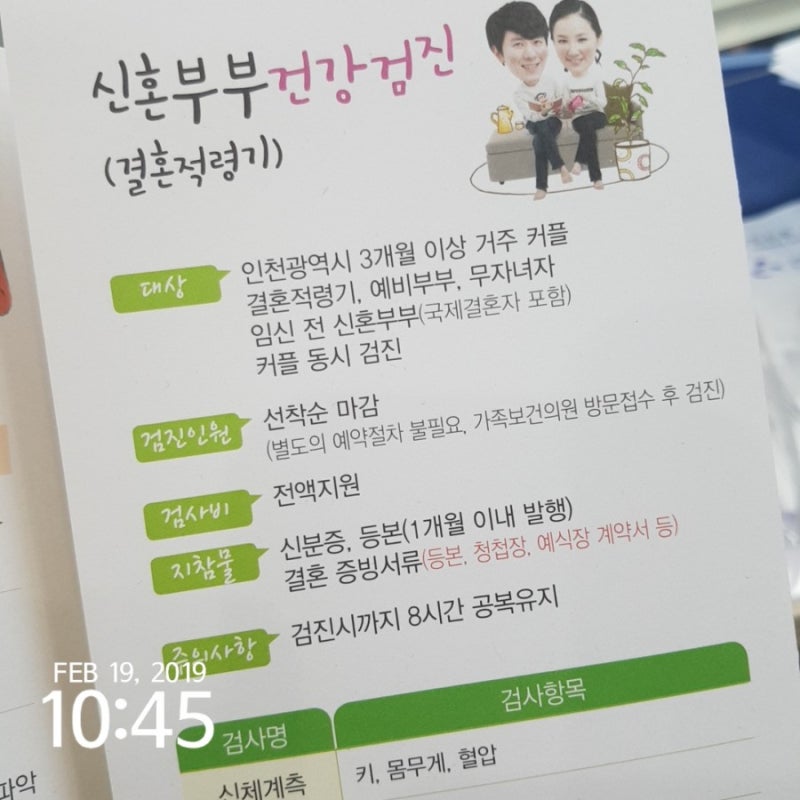 신혼부부의 건강검진 절차는 혈액검사, 소변검사 → 흉부엑스레이 → 인바디 순이다. 현재 흉부엑스레이가 없어 혈액검사, 소변검사, 인바디 검사를 받았습니다. B형 간염 및 C형 간염 항체를 확인할 수 있습니다. 임신을 시도하기 전이라 항체만 확인하면 될 것 같아서 보건소에서 기초검진을 했어요.