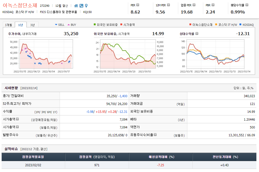 이녹스첨단소재 주가 전망, 목표주가, 기업정보에 대해 설명하는 기사입니다. 주식 투자를 하기 전에 기업 정보를 검토하고 주가 정보를 분석하는 것이 필요합니다. 이녹스첨단소재 주식의 주요현황 및 투자정보를 검토하고 시장에서의 위치를 알아보겠습니다.