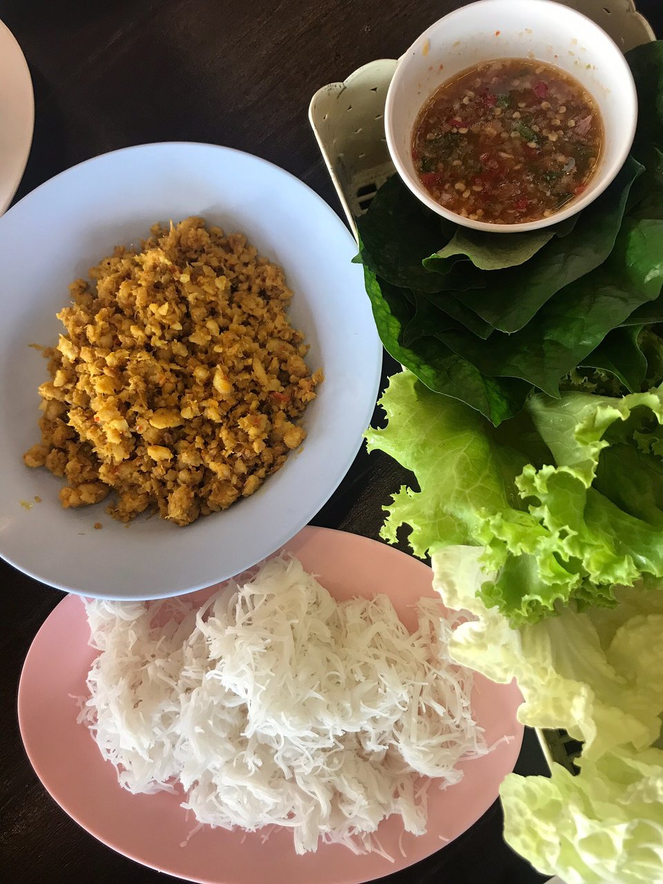 분차와 약간 비슷한 종류의 음식입니다. 게살의 맛과 쌀국수의 식감이 잘 어울립니다.